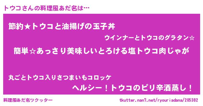 | ヘコむあだ名 | 『トウコ(笑)』『トウにー』『トウお』 |