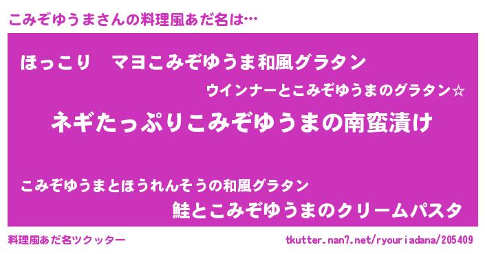 | ヘコむあだ名 | 『こみにゅー』『酢こんぶ』 |