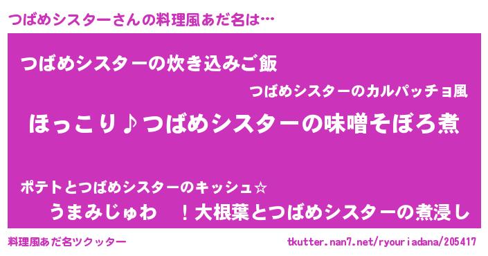 | 胡散臭い通販商品みたいなあだ名 | 『必ず成功するブレスレット…その名も「つばめシスター」』 |