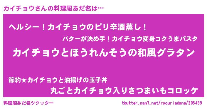 | ヘコむあだ名 | 『カイふぇ~』『カイ太郎』『牛乳』 |