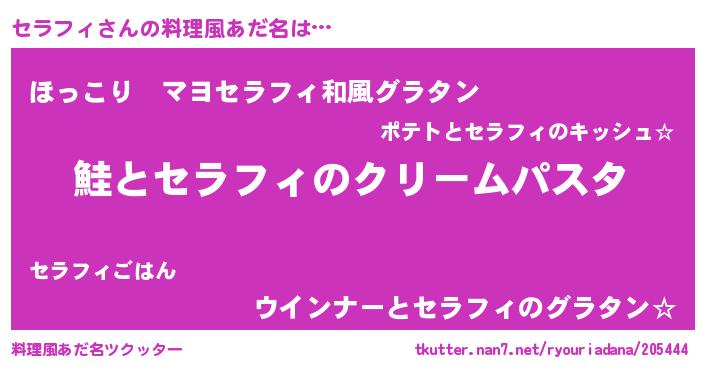 | ヒーロー風カッコイイあだ名 | 『天空の使者セラフィ』『仮面セラダー』 |
