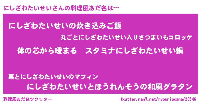 | 意味不明あだ名 | 『にしざわたいせいフォーエバー』 |