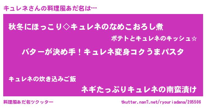 | ヒーロー風カッコイイあだ名 | 『慈愛の使者キュレネ』『炎刃騎士キュ』 |