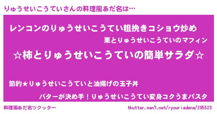 | ヘコむあだ名 | 『りゅにゅー』『りゅうせいこうてい(笑)』 |