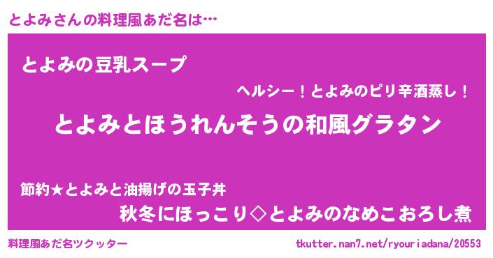 | 女子向けラノベタイトル風あだ名 | 『とよみの玉の輿計画!』『闇のとよみ』 |