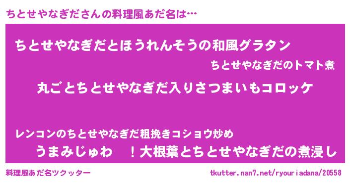 | 男性向けラノベタイトル風あだ名 | 『この素晴らしい世界にちとせやなぎだを!』 |