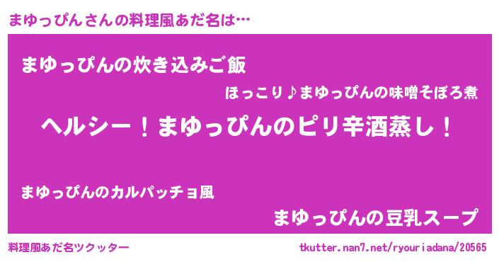 | 男性向けラノベタイトル風あだ名 | 『Re:まゆっぴんから始める異世界生活』 |
