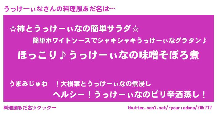 | 胡散臭い通販商品みたいなあだ名 | 『必ず成功するブレスレット…その名も「うっけーぃな」』 |