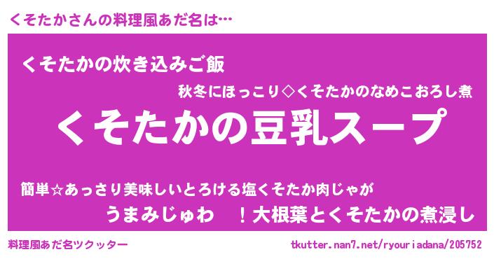 | 女子向けラノベタイトル風あだ名 | 『くそたかは平凡を望む』 |