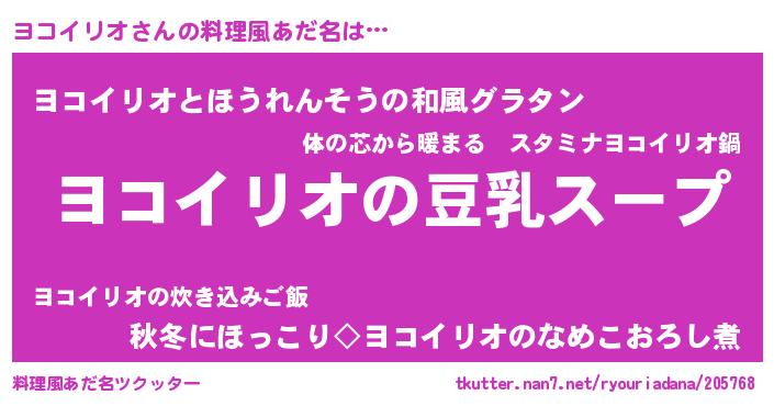 | 胡散臭い通販商品みたいなあだ名 | 『信頼と実績のサプリメント…その名も「ヨコイリオ」』 |