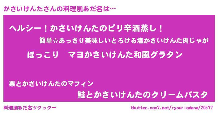 | 男性向けラノベタイトル風あだ名 | 『この素晴らしい世界にかさいけんたを!』 |