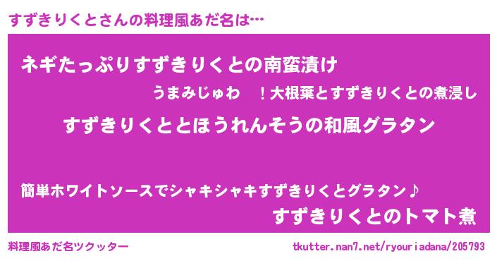 | 意味不明あだ名 | 『なめこ科すずきりくと属』 |