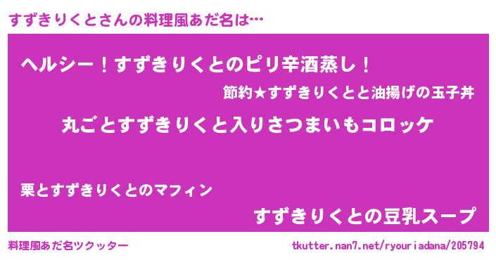 | 意味不明あだ名 | 『住所不定無職すずきりくと(98歳)』 |
