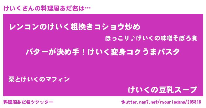 | ピコ太郎風あだ名 | 『ケケ太郎』『ケイ四郎』『ケコ一郎』 |