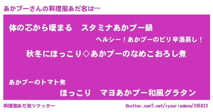 | ファンタジー風あだ名 | 『エターナルアカプーー』『ゼアカトゥ』 |
