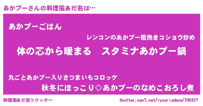 | 男性向けラノベタイトル風あだ名 | 『やはりあかプーの青春ラブコメはまちがっている 』 |