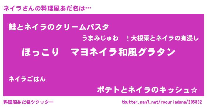 | ヘコむあだ名 | 『ネイっぺ』『レバニラ』『ネイもー』 |