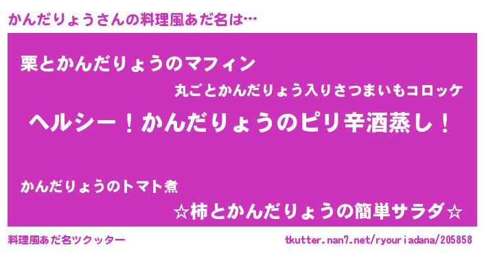 | 男性向けラノベタイトル風あだ名 | 『Re:かんだりょうから始める異世界生活』 |