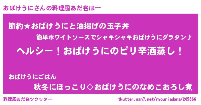 | 意味不明あだ名 | 『自称おばけうに』『ペロリンおばけうに』 |