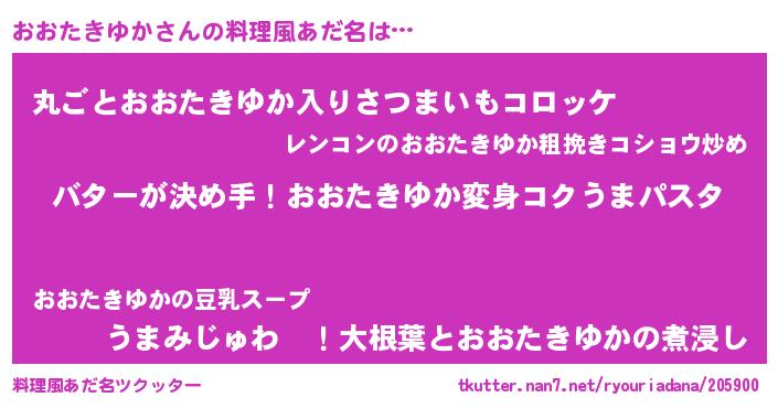 | 女子向けラノベタイトル風あだ名 | 『おおたきゆか恋絵巻』 |