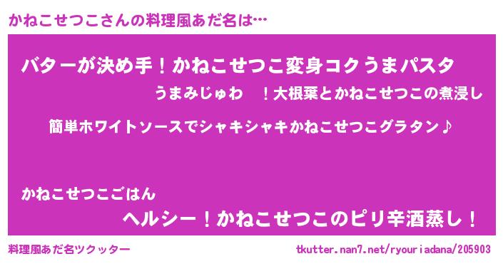 | 男性向けラノベタイトル風あだ名 | 『かねこせつこの嫁は女の子じゃないと思った?』 |