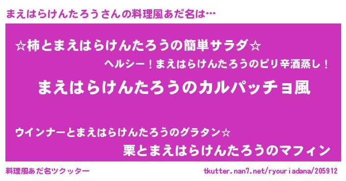 | 意味不明あだ名 | 『住所不定無職まえはらけんたろう(9歳)』 |