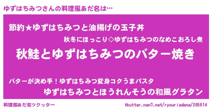 | 意味不明あだ名 | 『永久保存ゆずはちみつ』 |
