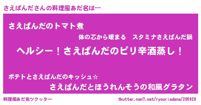 | 意味不明あだ名 | 『自称さえぱんだ』 |