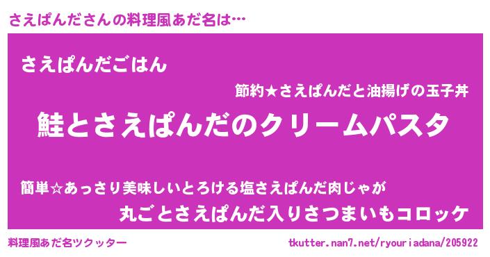 | 男性向けラノベタイトル風あだ名 | 『ノーゲーム・ノーサエパンダ』 |