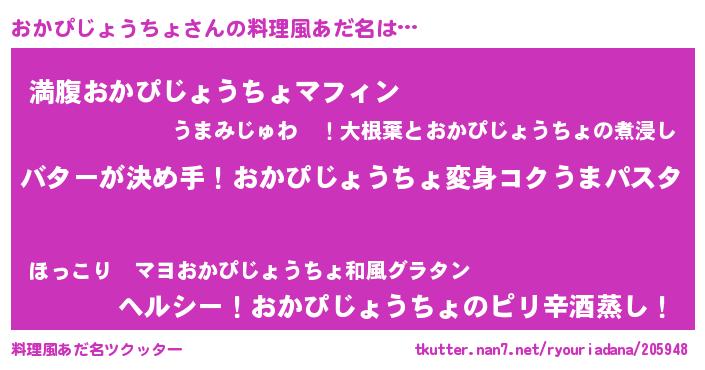 | ヘコむあだ名 | 『おかぴじょうちょ(小並感)』『レバニラ』 |