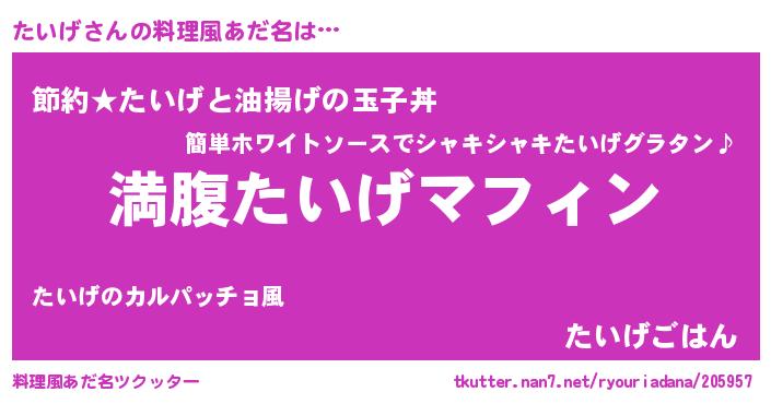 | ヘコむあだ名 | 『たいげ(震え声)』『たいもー』 |
