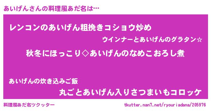 | ヘコむあだ名 | 『なまこ酢』『あいげん(爆)』 |