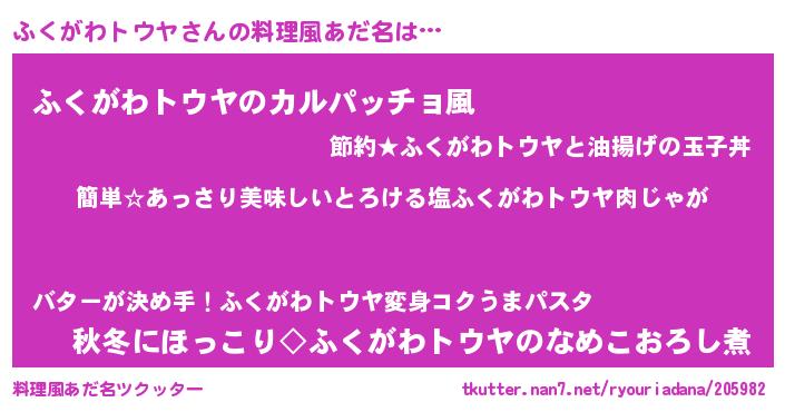 | 可愛いあだ名 | 『ふくがわトウヤママ』『ぽよふく』 |