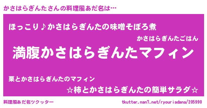 | 男性向けラノベタイトル風あだ名 | 『かさはらぎんたという概念が存在しない退屈な世界 』 |