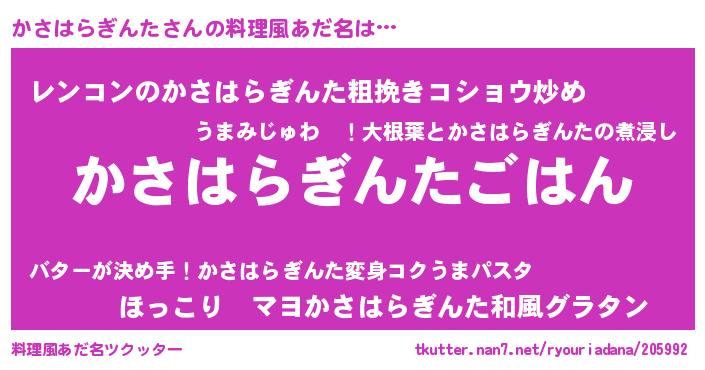 | 意味不明あだ名 | 『めかぶ科かさはらぎんた属』 |