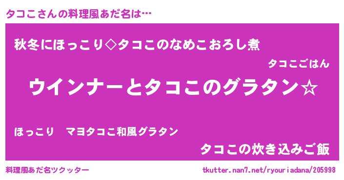 | ヘコむあだ名 | 『豆乳』『タコにー』『タコこ(笑)』 |
