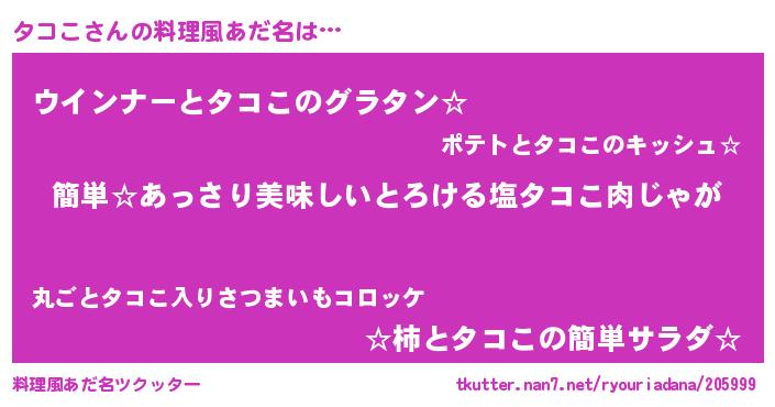 | ファンタジー風あだ名 | 『タコディッシュ』『エターナルタココー』 |
