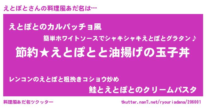 | 意味不明あだ名 | 『ペロリンえとぽと』『自称えとぽと』 |