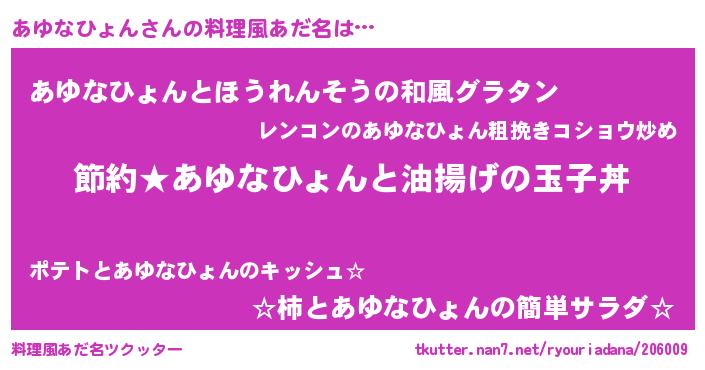 | 胡散臭い通販商品みたいなあだ名 | 『モテモテ間違いなしブレスレット…その名も「あゆなひょん」』 |