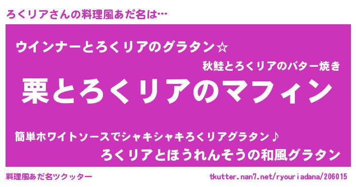 | 男性向けラノベタイトル風あだ名 | 『はたらくろくリアさま!』 |