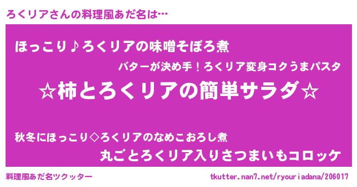 | 意味不明あだ名 | 『ペロリンろくリア』『自称ろくリア』 |