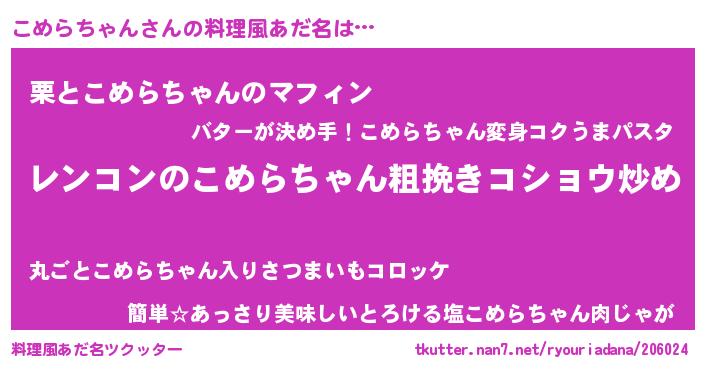 | 胡散臭い通販商品みたいなあだ名 | 『ガンによく効くアガリクス…その名も「こめらちゃん」』 |