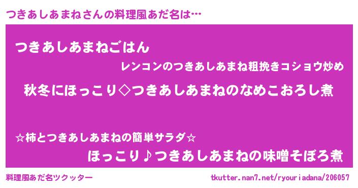 | ヘコむあだ名 | 『つきにー』『つきあしあまね(笑)』 |