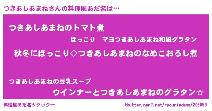 | 男性向けラノベタイトル風あだ名 | 『つきあしあまねに滅ぼされるだけの簡単なお仕事です』 |