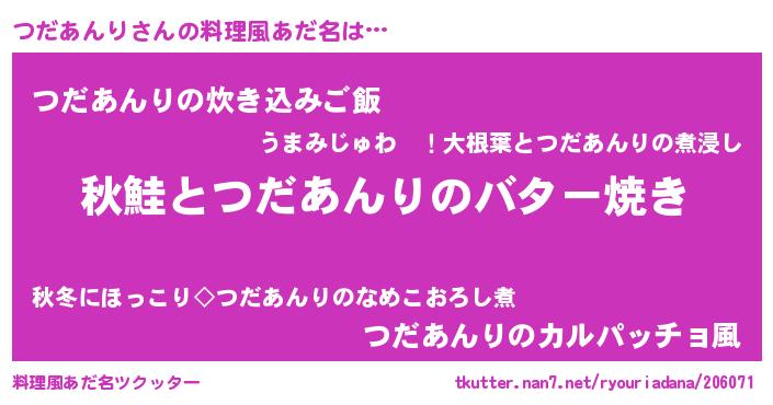 | 胡散臭い通販商品みたいなあだ名 | 『来世でも幸せになれる水素水…その名も「つだあんり」』 |