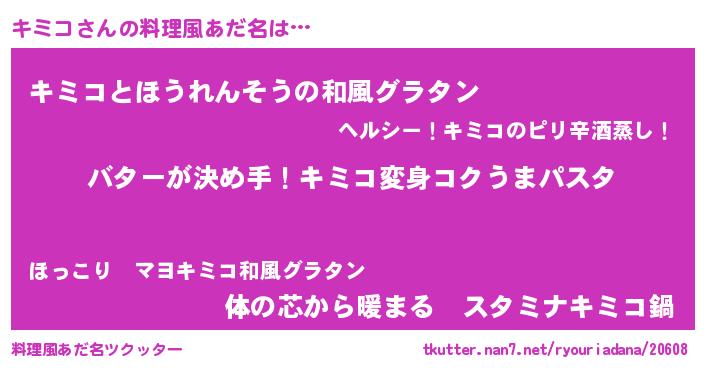 | 女子向けラノベタイトル風あだ名 | 『キミコ恋絵巻』『キミコの玉の輿計画!』 |