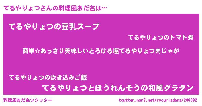 | 男性向けラノベタイトル風あだ名 | 『誰もが恐れるあのてるやりょつが、ぼくの専属メイドになるようです。』 |