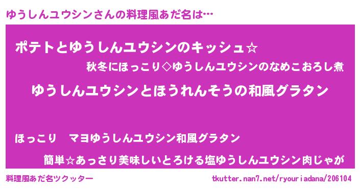 | 胡散臭い通販商品みたいなあだ名 | 『全米が絶賛したサプリメント…その名も「ゆうしんユウシン」』 |