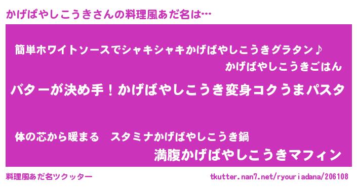 | ヘコむあだ名 | 『かげっぺ』『かげばやしこうき(笑)』 |