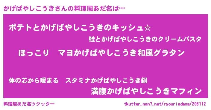 | 胡散臭い通販商品みたいなあだ名 | 『あなたにだけ特別に提供する限定10本のレアな日本酒…その名も「かげばやしこうき」』 |